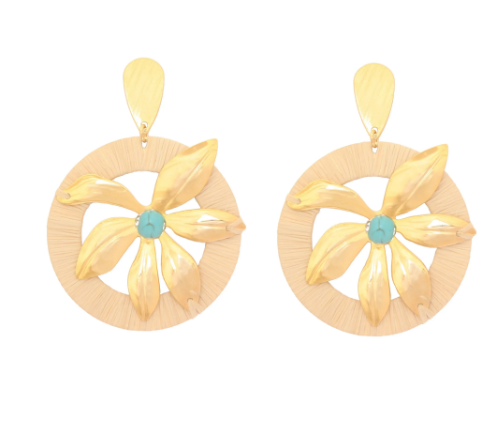 Aretes Redondos Laterra Flor Abierta Turquesa